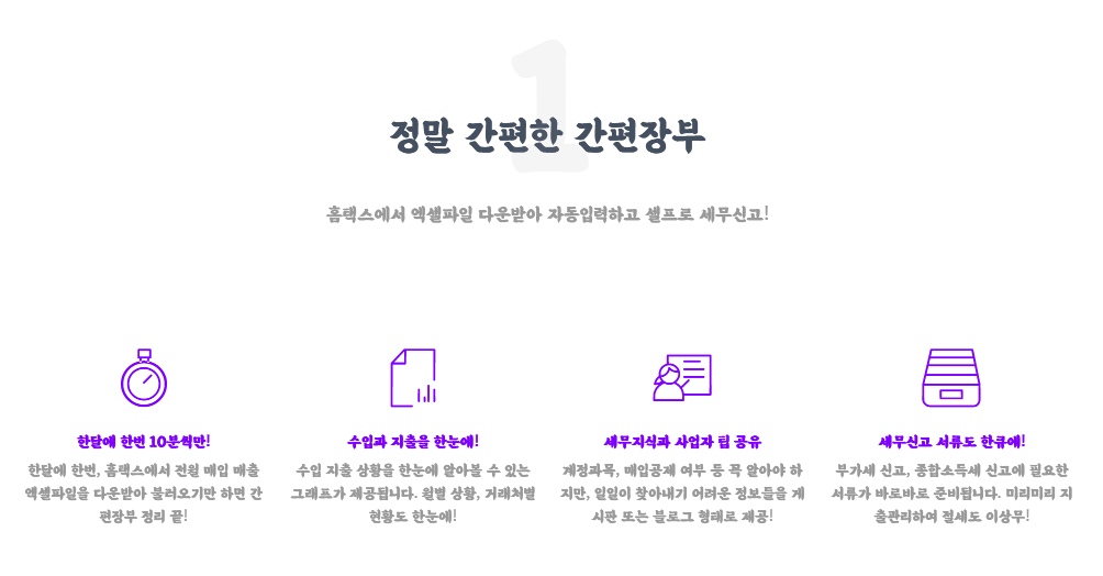 그 외에 장부를 작성하기만 하면, 부가세신고와 종합소득세 신고를 위한 요약자료가 완성되기 때문에