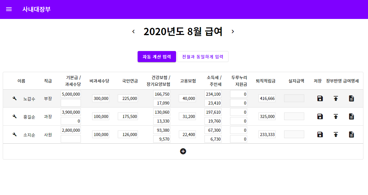 저장버튼을 누르면 실지급액이 계산됩니다.