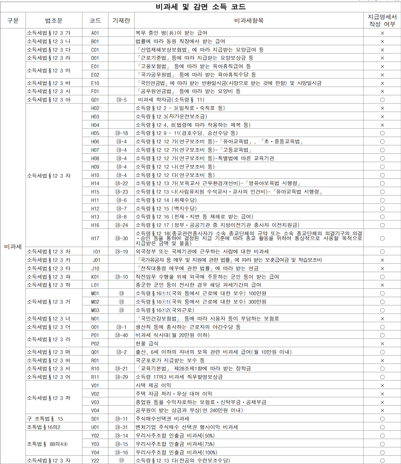 원천세 신고할 때 총지급액에 더해서 기록하는 비과세항목을 "제출비과세"라고 하며,